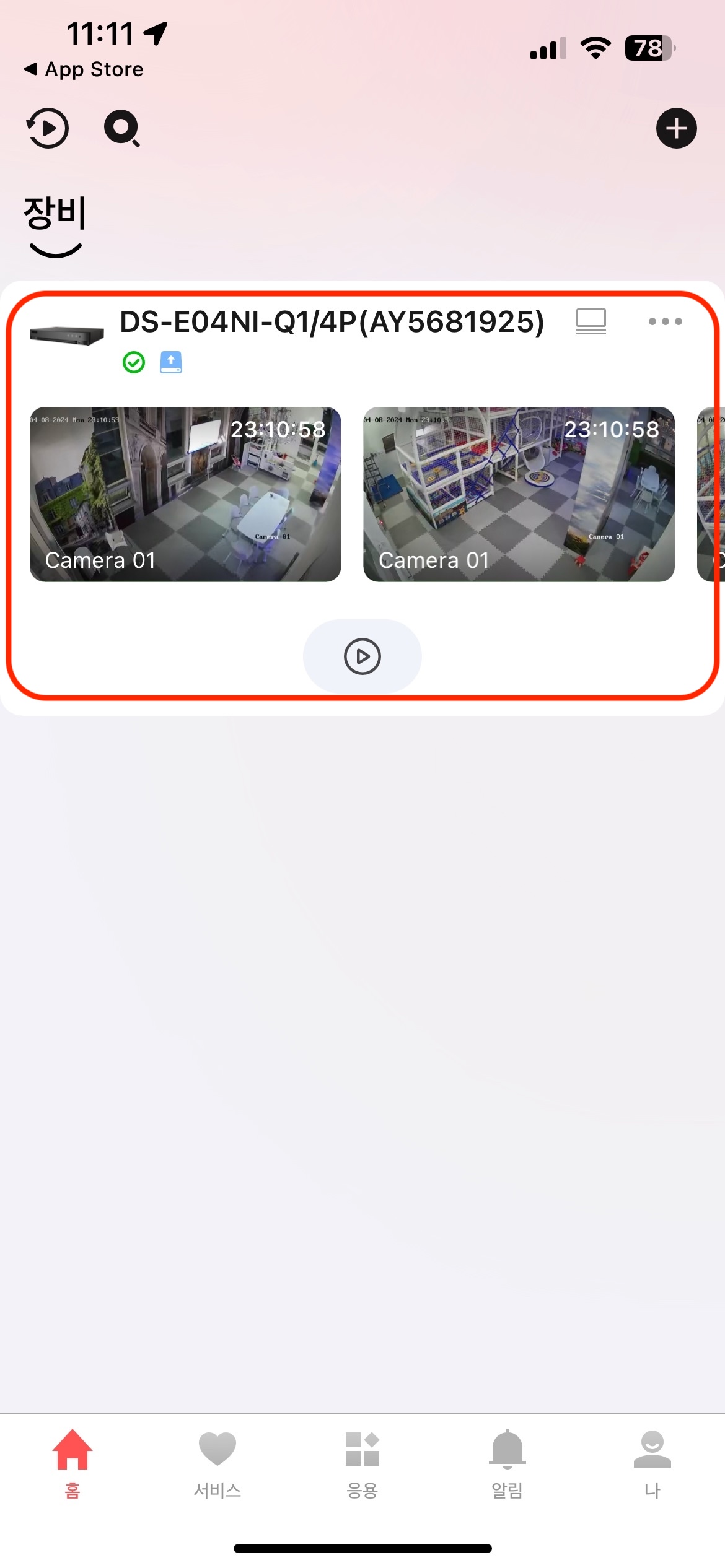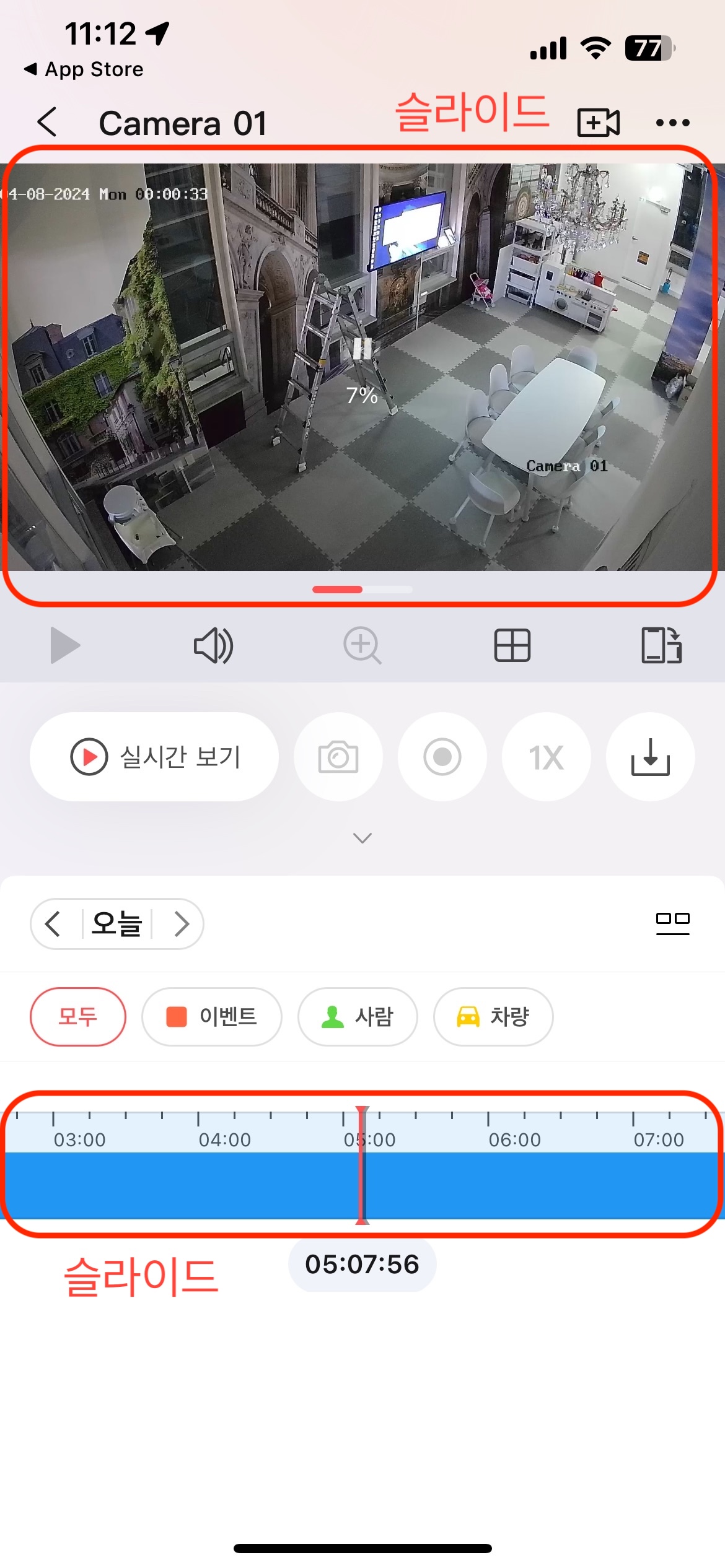 빨간색으로 표시된 부분을 터치하여 CCTV 화면 (실시간) 진입